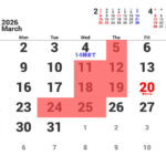 2026年2月25日 / 最終更新日 : 2026年2月25日 M.C.BASE お知らせ 3月営業日のお知らせ 今年も猛暑になるそうです 今がクルマいじりに 最適な季節です ご来店お待ちしております 赤が店休日です