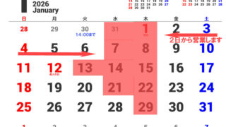 お知らせ2025年12月23日1月年始営業日のお知らせ