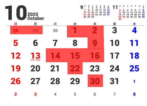 お知らせ2025年11月28日12月・年末年始営業日のお知らせ